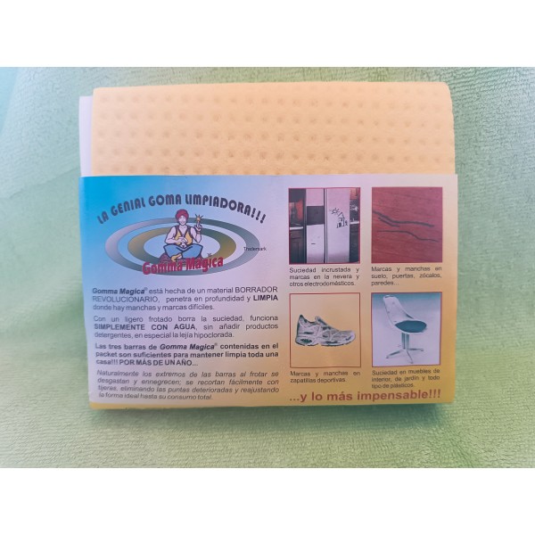 LA GOMA BORRADORA LIMPIA MANCHAS SOBRE TODAS LAS SUPERFICIES DE LA CASA SOLO CON AGUA. IDEAL PARA PAREDES, MUEBLES Y TODO TIPO DE OBJETOS.